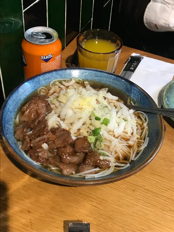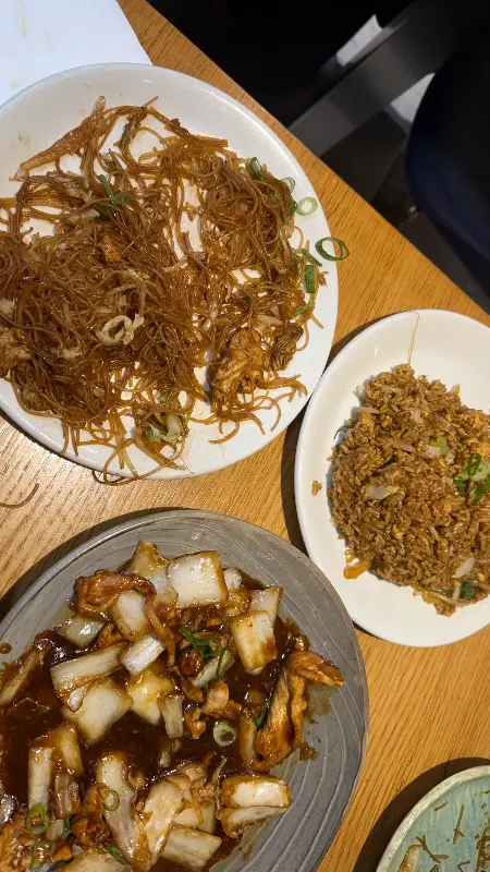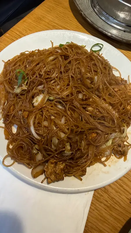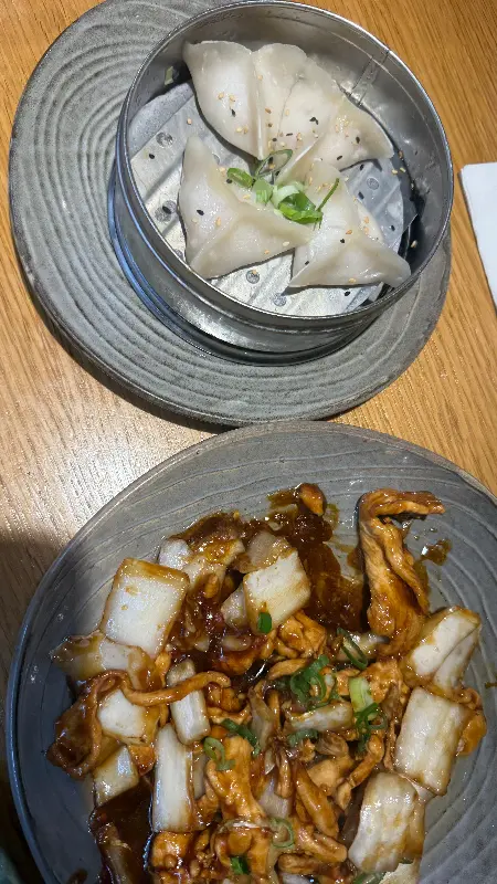 소고기 국수와 볶음밥을 주문했다. 그런데 메뉴에 ‘rice cake’라고 적힌 볶음밥은 밥이 아니라 떡볶이였다는 사실! 예상치 못한 반전이었지만, 쫄깃한 떡과 매콤한 양념이 어우러진 떡볶이도 훌륭한 선택이었다. 사진 속 볶음 요리처럼 윤기가 흐르고 먹음직스러웠다.
