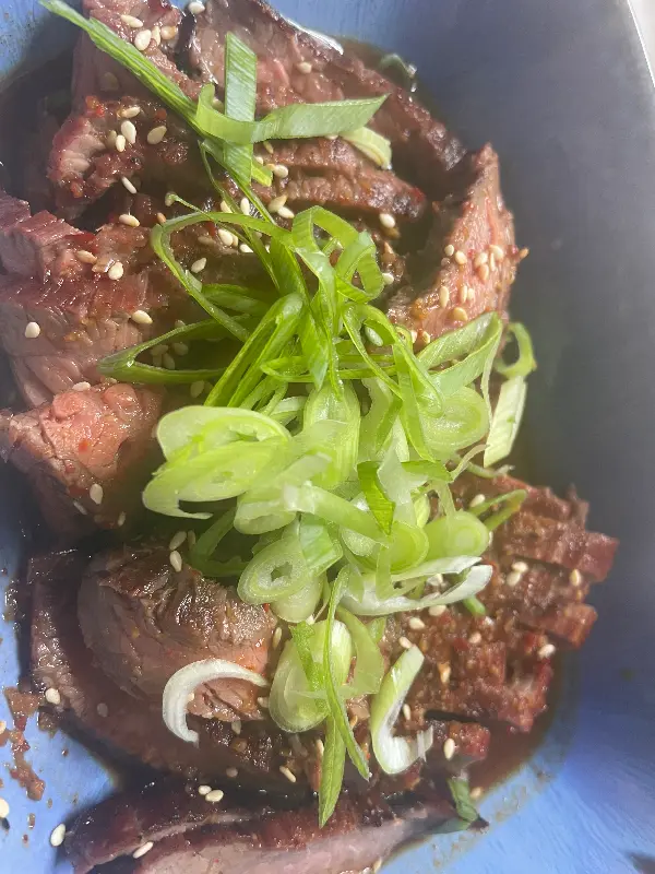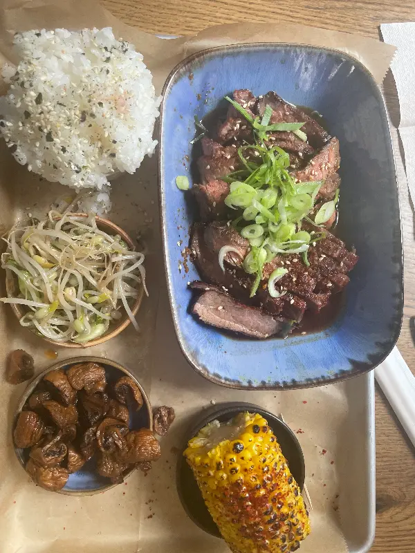 마지막으로 간장 양념 스테이크를 맛보았다. 윤기가 자르르 흐르는 스테이크 위에 옥수수와 버섯이 곁들여져 있었다. 스테이크는 부드럽고 육즙이 풍부했으며, 간장 양념은 달콤하면서도 짭짤했다. 옥수수와 버섯은 스테이크의 풍미를 더욱 풍성하게 만들어 주었다. 무엇보다 가격이 저렴하다는 점이 놀라웠다. 이 가격에 이런 퀄리티의 스테이크를 맛볼 수 있다는 것이 믿기지 않았다.