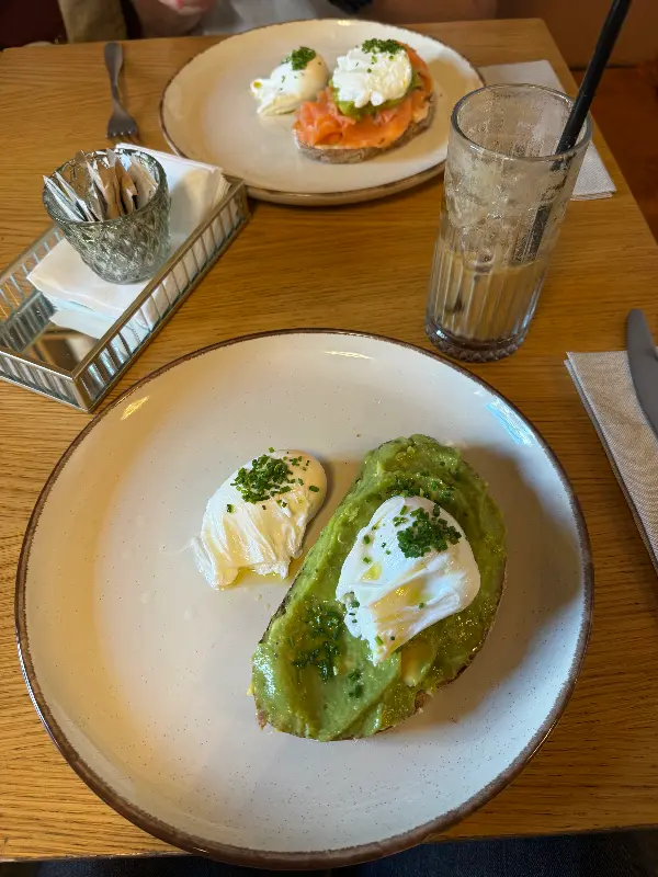 하지만 무엇보다 나를 사로잡았던 메뉴는 아보카도 연어 토스트였다. 신선한 아보카도와 훈제 연어, 그리고 촉촉한 수란이 어우러진 이 토스트는, 세 번 중 두 번이나 완벽한 맛을 선사했다. 부드러운 아보카도와 짭짤한 훈제 연어, 그리고 고소한 수란의 조합은 환상적이었다. 특히, 토스트 위에 올려진 신선한 채소는 상큼함을 더해 전체적인 맛의 균형을 맞춰주었다.