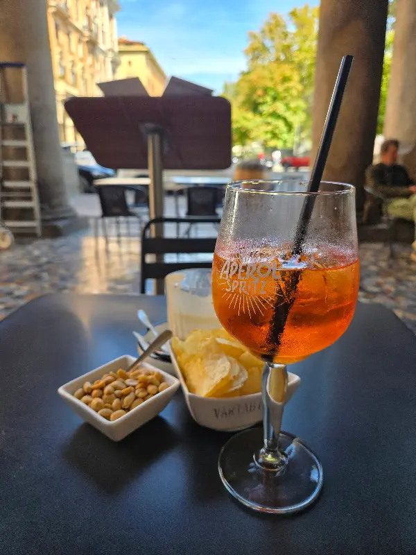 마침 아페롤 맛집이라는 리뷰를 보았던 터라, 망설임 없이 시원한 아페롤 한 잔을 주문했다. 쌉쌀하면서도 달콤한 맛, 그리고 오렌지 향이 어우러진 아페롤은 로마의 뜨거운 햇살 아래 지친 몸과 마음에 활력을 불어넣어 주었다. 곁들여 나온 스낵과 함께 즐기는 아페롤은 완벽한 휴식 그 자체였다.