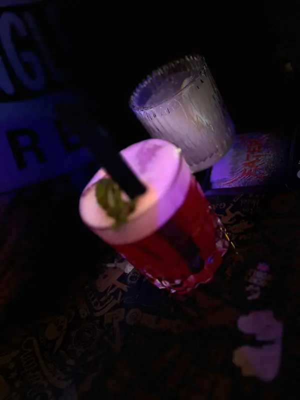 칵테일의 비주얼 또한 훌륭합니다. 사진에서 볼 수 있듯이, 붉은 색 칵테일 위에 하얀 거품이 얹어져 있고, 민트 잎으로 장식되어 있습니다. 맛뿐만 아니라 시각적인 아름다움까지 더해져, 더욱 만족스러운 경험을 선사합니다.