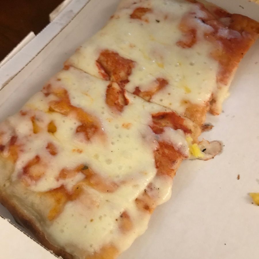 사진 속 피자들을 보면, 큼지막한 사각형 모양에 다양한 토핑이 올라가 있는 것을 확인할 수 있다. 특히 노란색 토핑이 얹어진 피자는 독특한 비주얼을 자랑한다.