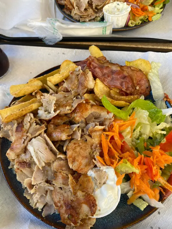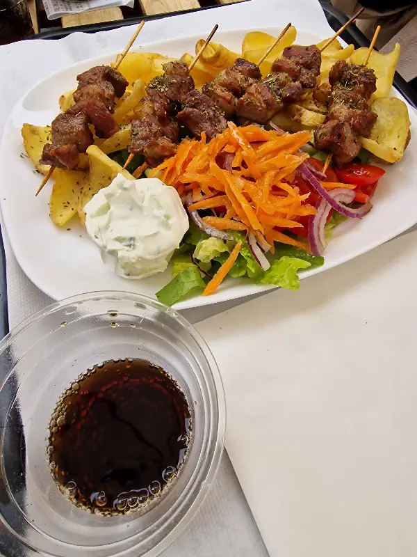그리스 음식을 맛보며, 가격 또한 합리적이라는 것을 느꼈습니다. 푸짐한 양의 피타 자이로와 감자튀김을 15유로도 안 되는 가격에 즐길 수 있다는 것은 정말 놀라웠습니다. 특히, 음식의 퀄리티와 양을 고려하면, 정말 가성비가 좋다고 생각합니다. 다른 손님들도 저와 같은 생각인지, 식당 안은 항상 사람들로 붐볐습니다.