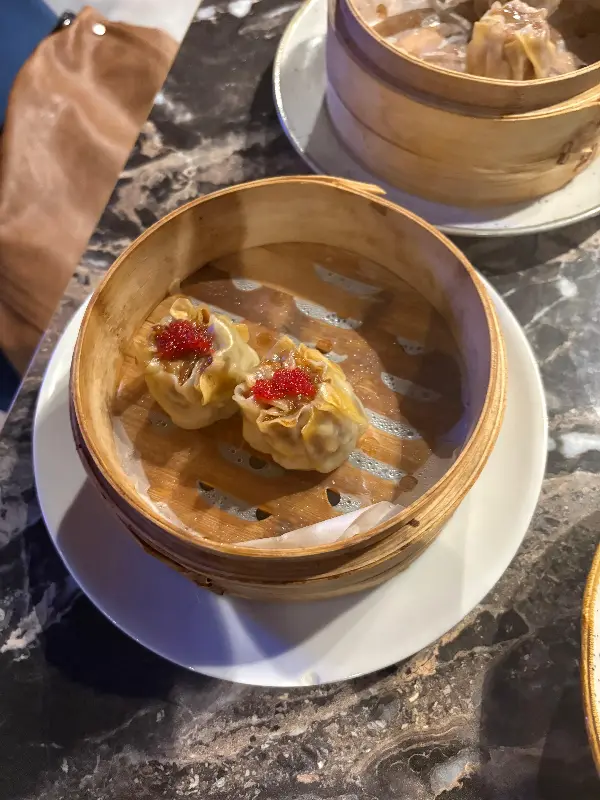 딤섬 위에 올려진 붉은색 토핑이 식감을 자극합니다. 섬세한 플레이팅은 음식에 대한 기대감을 높여줍니다.