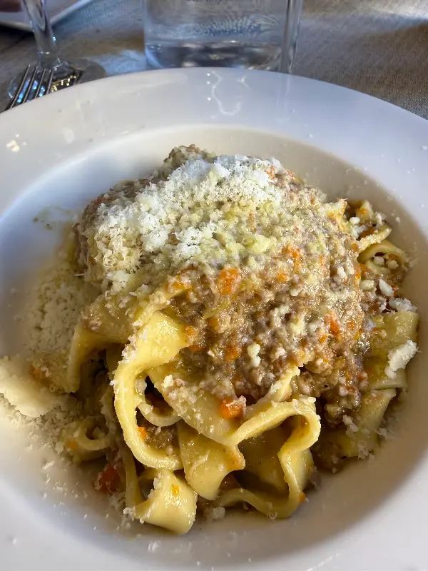 타베르나치아에서 가장 인상 깊었던 메뉴는 바로 그리지아(Gricia)였습니다. 돼지고기와 양념의 조화가 환상적인 파스타로, 첫 입을 먹는 순간 입안 가득 퍼지는 풍미에 감탄했습니다. 짭짤하면서도 고소한 돼지고기의 맛과 파스타의 조화는 정말 훌륭했습니다. 돼지고기는 전혀 짜지 않았고, 오히려 파스타의 풍미를 더욱 깊게 만들어주는 역할을 했습니다.