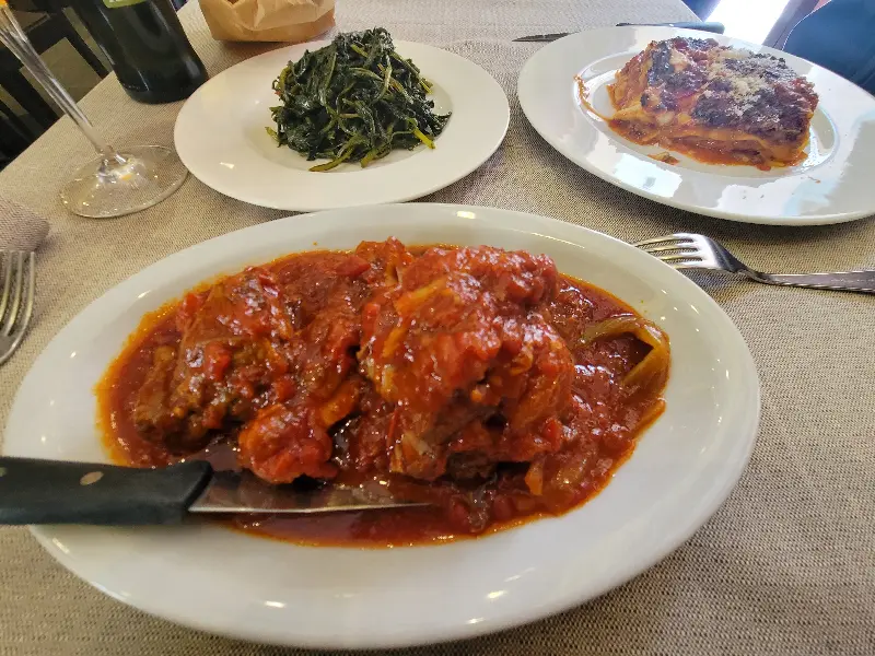 함께 주문한 라자냐 또한 훌륭했습니다. 층층이 쌓인 파스타 면 사이로 풍성한 고기와 치즈가 가득했고, 입안에서 사르르 녹는 듯한 부드러운 식감이 일품이었습니다. 특히, 짜지 않고 담백한 맛이 한국인 입맛에도 잘 맞았습니다. 곁들여 나온 치커리 볶음은 쌉싸름하면서도 신선한 맛이 독특했습니다. 마치 나물 볶음을 먹는 듯한 친근한 느낌도 들었습니다.
