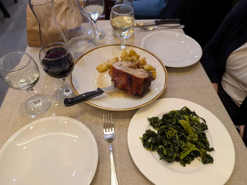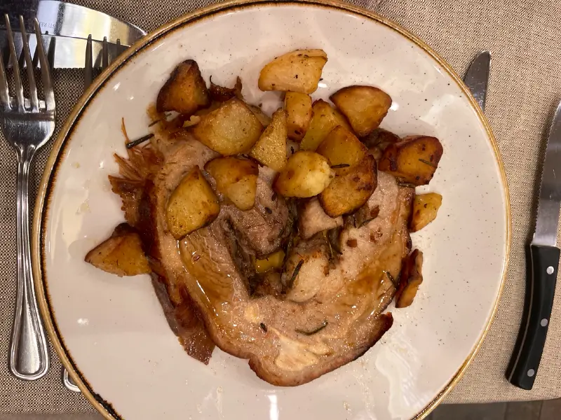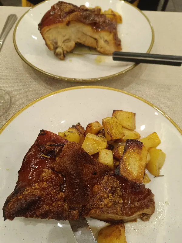 특히 감자를 곁들인 통돼지구이는 겉은 바삭하고 속은 촉촉한 완벽한 조화를 이루었습니다. 돼지 껍질의 바삭함과 부드러운 살코기의 조화는 입안에서 황홀한 경험을 선사했습니다. 곁들여진 감자는 짭짤하면서도 고소한 맛이 돼지고기와 완벽하게 어울렸습니다.