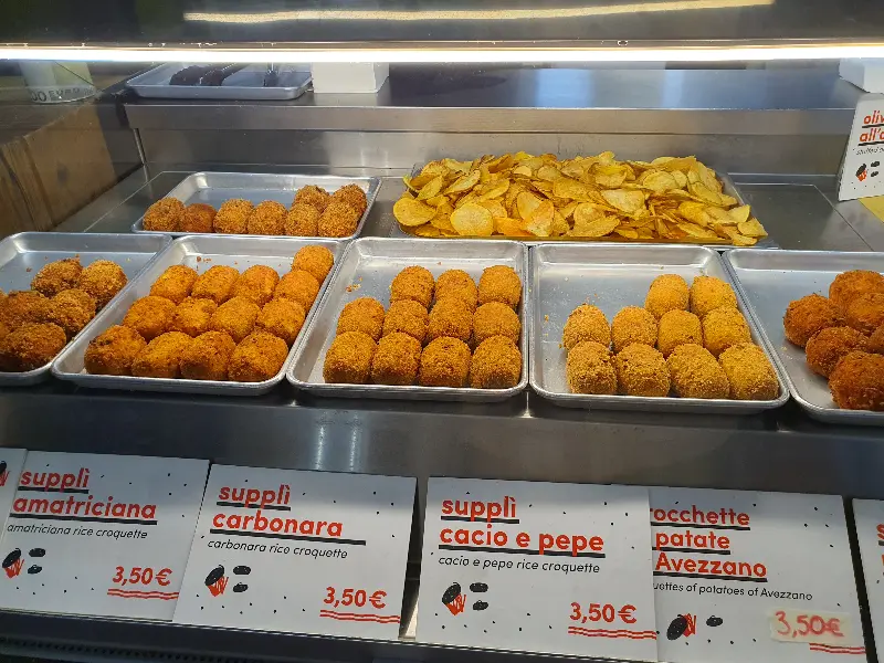 수플리 아마트리치아나, 수플리 카르보나라, 수플리 카치오 에 페페 등 다양한 종류의 수플리가 있었다. 가격은 모두 3.5유로로, 부담 없이 즐길 수 있는 가격이었다.