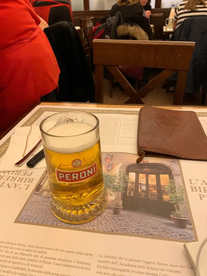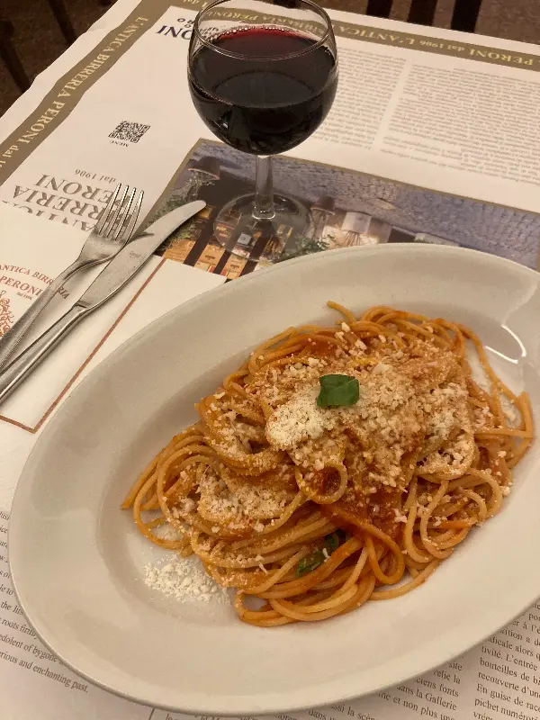 트레비 분수의 웅장함을 뒤로하고, 로마의 골목길을 따라 발걸음을 옮겼다. 오늘 나의 목적지는 1906년부터 이어져 온 로마 맛집, ‘안티카 비레리아 페로니(Antica Birreria Peroni)’다. 붉은색 간판에 새겨진 ‘dal 1906’이라는 문구가 오랜 역사를 증명하듯 묵직하게 다가왔다. 문을 열고 들어서자, 활기찬 이탈리아어로 가득 찬 공간이 눈에 들어왔다.