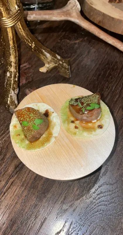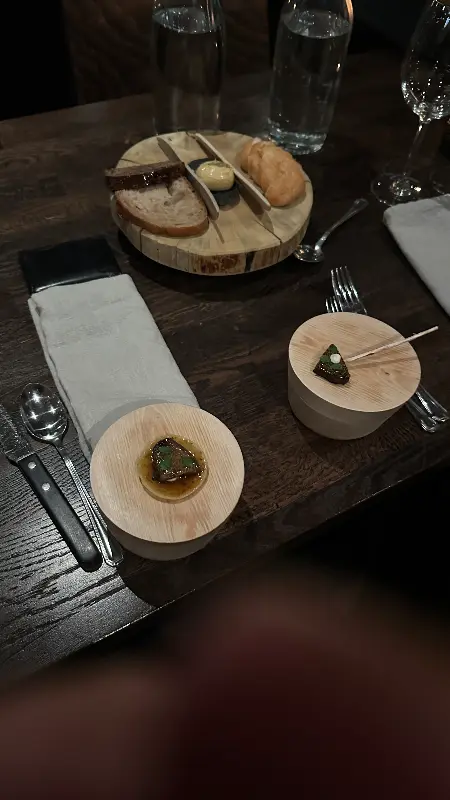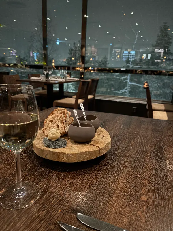 문을 열고 들어선 레스토랑은, 첫인상부터 깊은 인상을 남겼습니다. 우아하면서도 절제된 인테리어는 차분하고 편안한 분위기를 자아냈습니다. 은은한 조명 아래, 테이블마다 놓인 정갈한 세팅은 다가올 식사에 대한 기대감을 한층 높였습니다. 레스토랑 자체가 매우 조용한 곳에 위치해, 번잡함과는 거리가 먼 완벽한 휴식을 선사했습니다. 창밖으로 펼쳐진 눈 덮인 숲의 풍경은, 마치 동화 속에 들어온 듯한 착각을 불러일으켰습니다. 저녁 무렵 방문한 덕분에, 눈 덮인 숲은 더욱 신비롭고 마법 같은 분위기를 자아냈습니다.