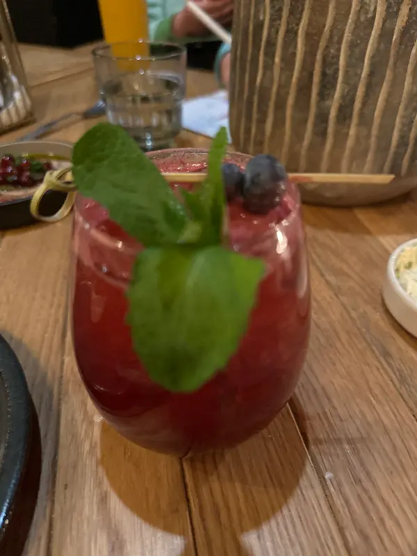 디저트와 함께 주문한 음료는 신선한 민트와 블루베리로 장식되어 있었습니다. 상큼한 맛이 입안을 개운하게 해주었고, 식사를 마무리하는 데 부족함이 없었습니다.