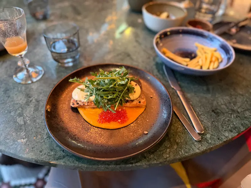 메뉴를 펼쳐 들고 고민에 빠졌습니다. 다양한 메뉴들 앞에서 어떤 음식을 선택해야 후회하지 않을까 하는 행복한 고민이었죠. 직원에게 추천을 받아 “타타키 & 참깨”와 “파이크퍼치 & 훈제 버터”를 주문했습니다. 잠시 후, 정성스럽게 플레이팅된 요리가 테이블 위에 놓였습니다.