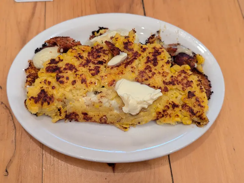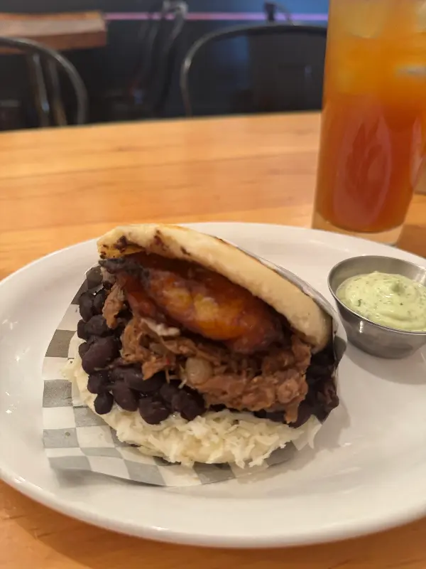 한입 베어 무는 순간, 겉은 바삭하고 속은 촉촉한 아레파의 식감과 함께 다채로운 맛이 느껴집니다. 짭짤한 고기는 입맛을 돋우고, 달콤한 바나나는 부드러움을 더하며, 고소한 콩은 전체적인 풍미를 더욱 풍성하게 만들어줍니다.