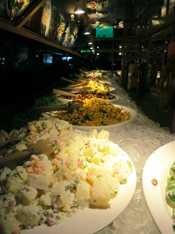 슈라스코를 즐기기 전, 다채로운 샐러드 바가 눈길을 사로잡는다. 싱싱한 채소와 샐러드, 각종 핑거푸드가 보기 좋게 진열되어 있어 식욕을 돋운다. 샐러드 종류가 다양해서 샐러드만으로도 배가 부를 정도라는 리뷰처럼, 신선함이 가득한 샐러드 바는 훌륭한 시작을 알린다.