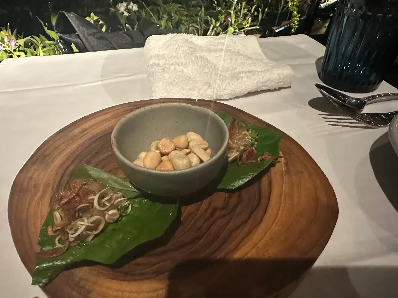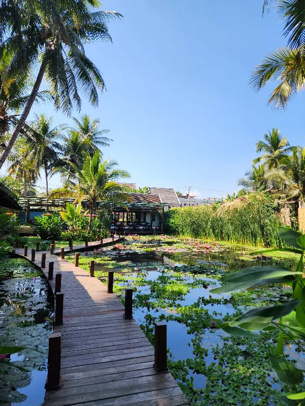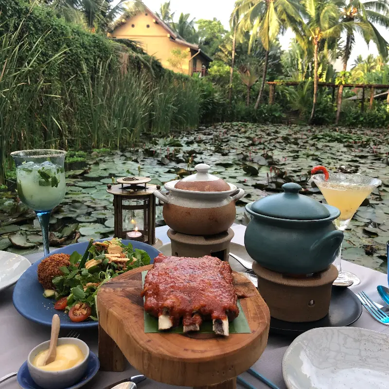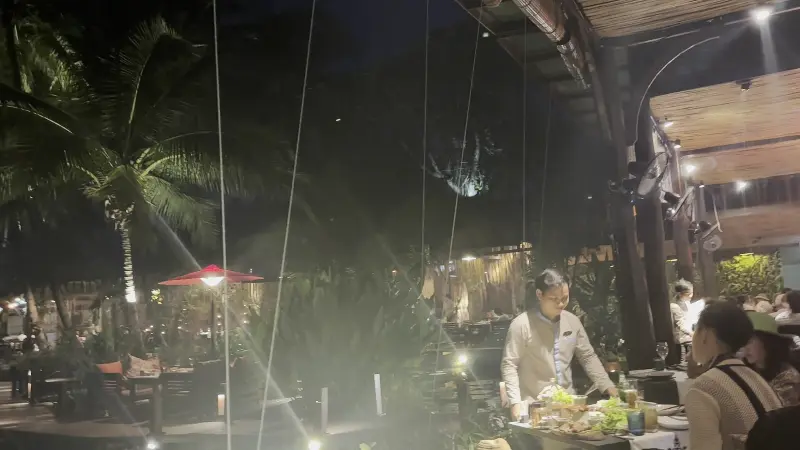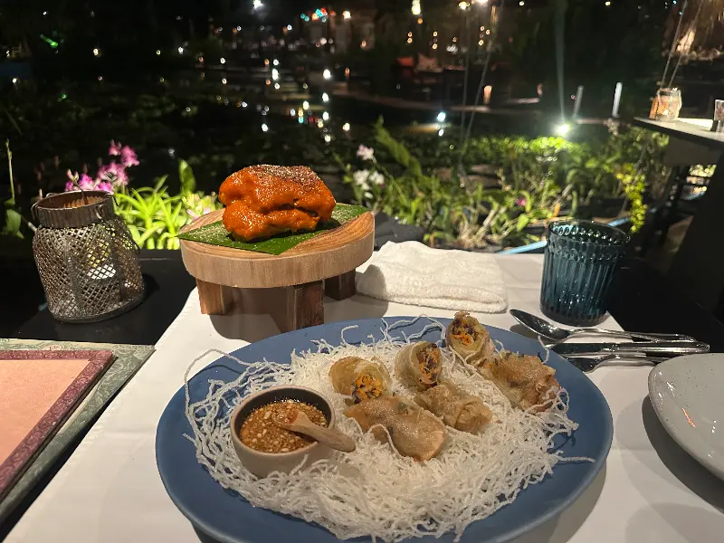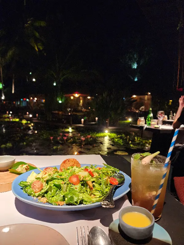 나무로 만들어진 다리를 건너 레스토랑으로 향하는 길조차 특별했습니다. 연못 위를 유유히 떠다니는 연꽃들을 감상하며, 마치 다른 세계로 들어가는 듯한 기분을 느낄 수 있었습니다. 잔잔한 물결 소리와 함께 들려오는 새들의 지저귐은 마음을 편안하게 해주었고, 곧 마주하게 될 맛있는 음식에 대한 기대감을 더욱 높였습니다. 미리 예약하고 방문하여 강가 쪽에 자리를 잡는다면, 더욱 멋진 풍경을 감상하며 식사를 즐길 수 있습니다.