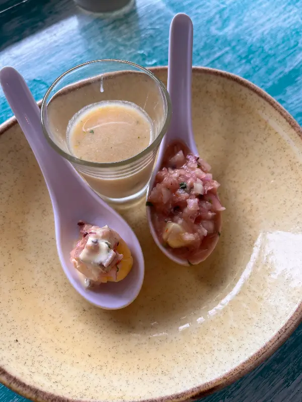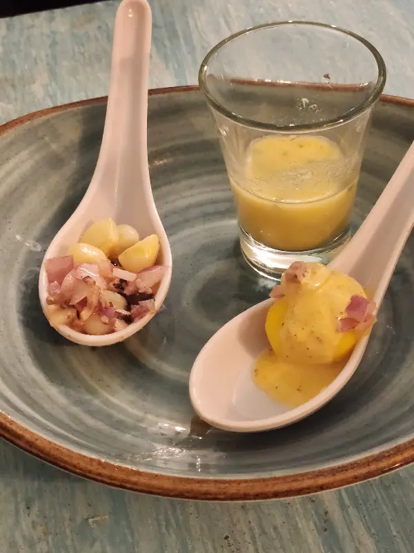 잠시 후, APO의 센스를 엿볼 수 있는 웰컴 푸드가 나왔다. 작은 스푼 위에 올려진 세비체는 신선한 해산물의 풍미와 새콤한 소스가 어우러져 입맛을 돋우기에 충분했다.