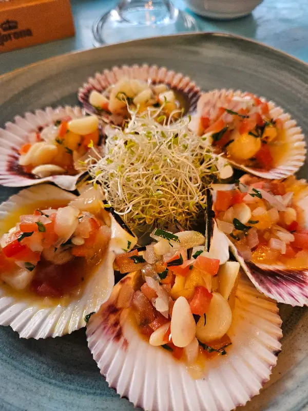 본격적인 식사를 위해 다양한 메뉴를 주문했다. 먼저 scallops bianca, 즉 구운 가리비는 짭짤하면서도 고소한 맛이 일품이었다. 촉촉하게 구워진 가리비는 입안에서 부드럽게 녹아내렸고, 함께 곁들여진 소스는 풍미를 한층 더 끌어올렸다.