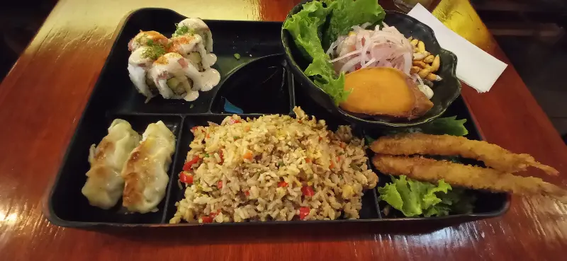자리에 앉아 메뉴판을 펼쳐보니, 다양한 일식 요리들이 눈길을 사로잡았다. 스시, 사시미, 마키는 물론, 페루의 맛을 담은 퓨전 요리까지 다채로운 선택지가 있었다. 고민 끝에 우리는 ‘젠 플래터’와 세비체, 그리고 녹차 한 주전자를 주문했다.