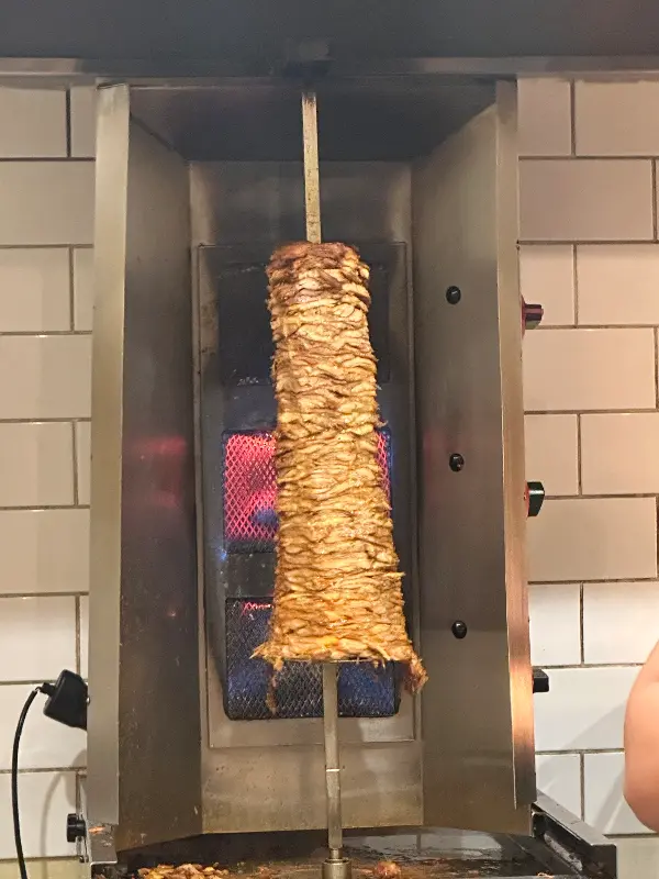 특히 인상적이었던 것은, 갓 구워져 나오는 샤와르마의 비주얼입니다. 사진에서 볼 수 있듯이, 육즙 가득한 고기가 층층이 쌓여 회전하는 모습은 그 자체로 예술 작품과 같습니다. 뜨거운 열기에 노릇하게 익어가는 고기의 향은, 저의 식욕을 더욱 자극했습니다.