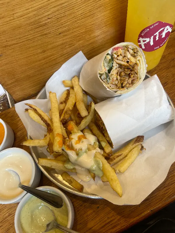 샤와르마와 함께 제공되는 감자튀김은, PITA에서 꼭 맛봐야 할 메뉴 중 하나입니다. 직접 썬 감자를 튀겨낸 감자튀김은 겉은 바삭하고 속은 촉촉한, 완벽한 조화를 자랑합니다. 짭짤하면서도 고소한 맛은 샤와르마와 환상적인 궁합을 이루며, 멈출 수 없는 중독성을 선사합니다.