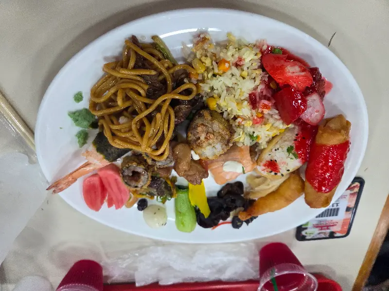 독특한 뷔페 시스템도 인상적이었습니다. 제가 살던 곳에서는 뷔페에서 정해진 가격으로 음식, 음료, 디저트를 무제한으로 즐길 수 있었는데, 난데모야는 무게로 계산하는 방식이었습니다. 또한, 젓가락으로 초밥과 니기리를 집으려는데 젓가락이 반으로 부러지는 황당한 경험을 했습니다. 여러 식당에 가봤지만 이런 일은 처음이었습니다.