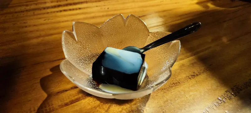 식사를 마치고 나니, 따뜻한 커피 젤리가 무료로 제공되었다. 쌉쌀한 커피 향과 달콤한 젤리의 조화가 입안을 깔끔하게 마무리해 주었다. 마지막까지 세심한 배려가 느껴지는 서비스에 감동했다.