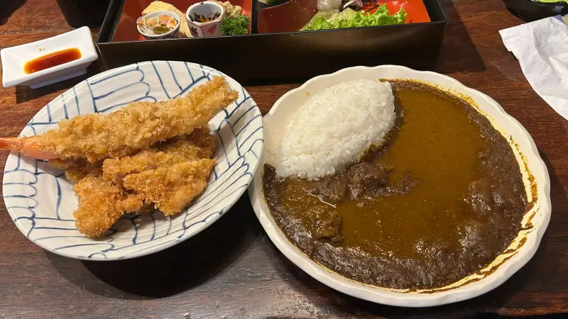 눈으로도 즐거운 플레이팅, 튀김과 카레의 조화가 환상적이다.