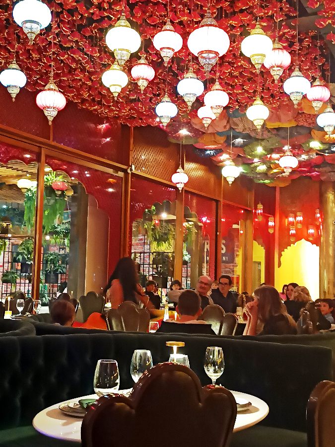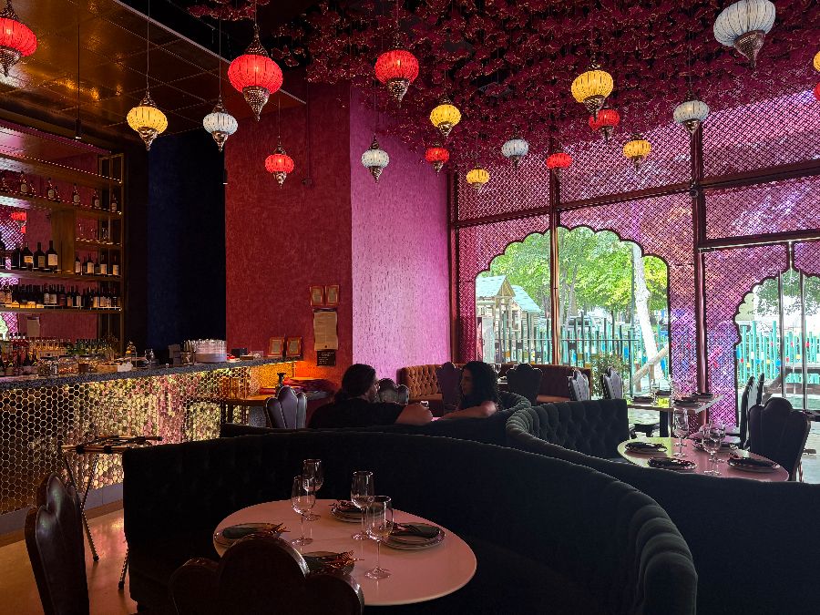 특히 눈길을 끄는 것은 입구 근처의 화려한 아치형 조각 장식이다. 마치 인도 궁전의 문을 통과하는 듯한 느낌을 주며, 그 뒤로 보이는 붉은 벽돌과 푸른 하늘은 이국적인 정취를 더욱 돋보이게 한다. 내부 공간은 넉넉하게 떨어져 있는 테이블 덕분에 타인의 시선을 신경 쓰지 않고 오롯이 식사에 집중할 수 있는 프라이빗한 분위기를 제공한다. 또한, 어두운 색상의 가죽 의자는 편안함을 선사하며, 전체적인 공간의 품격을 한 단계 높여준다. 심지어 화장실마저도 깨끗하고 인테리어가 훌륭하여, 작은 디테일까지 놓치지 않는 세심함에 감탄하게 된다.