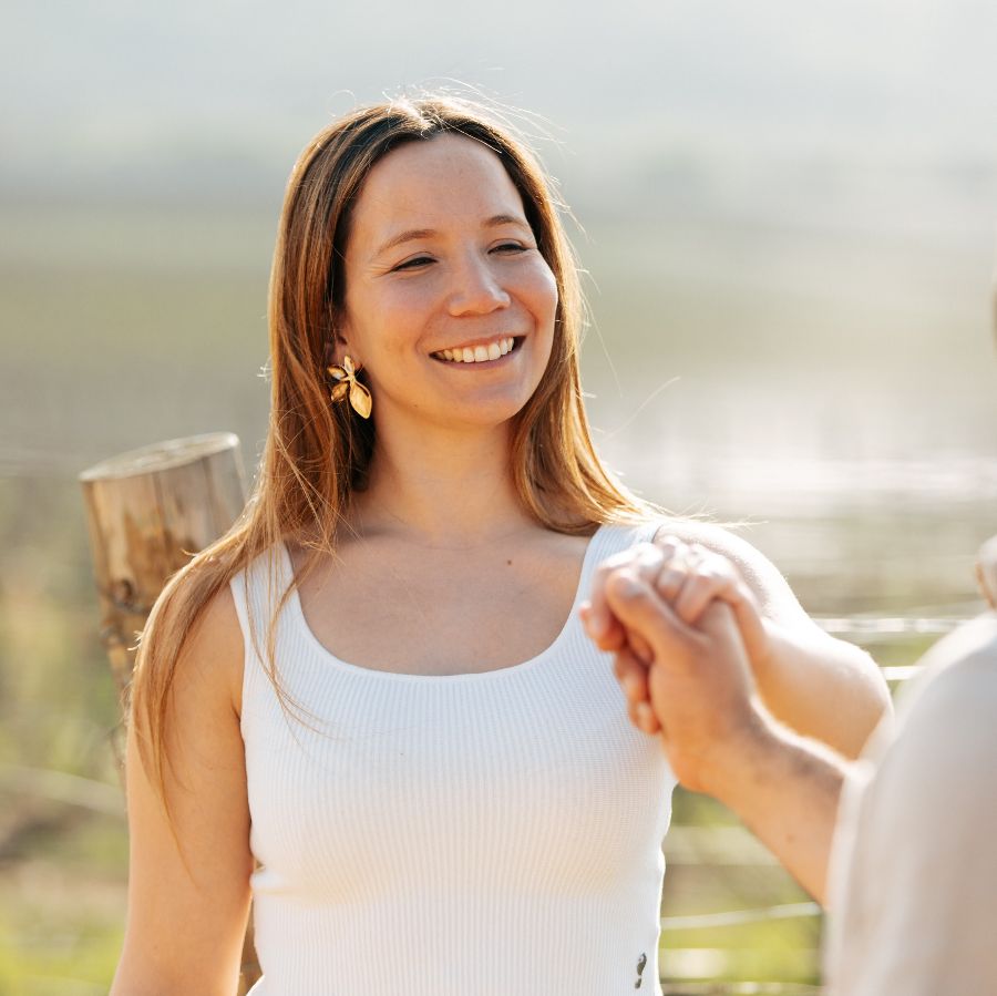 밝게 웃으며 카메라를 응시하는 직원. 친절하고 활기찬 서비스가 기대된다.