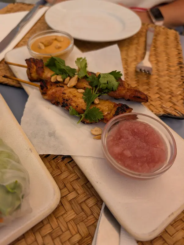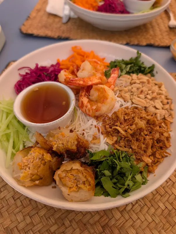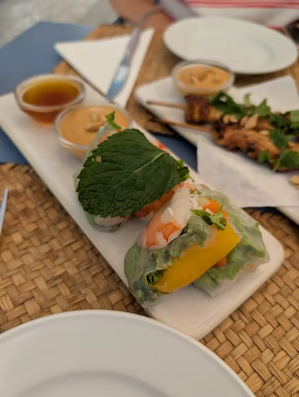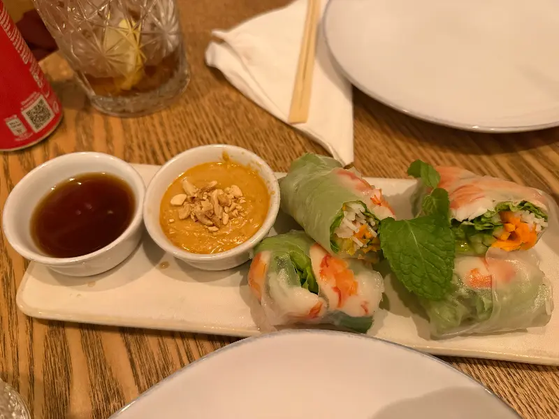 메인 요리를 다 먹기도 전에, 새우 스프링롤을 추가로 주문했다. 다른 테이블에서 스프링롤을 먹는 모습을 보니, 도저히 참을 수 없었다. 투명한 라이스페이퍼 안에 신선한 채소와 새우가 가득 들어 있었고, 독특한 소스가 함께 나왔다.