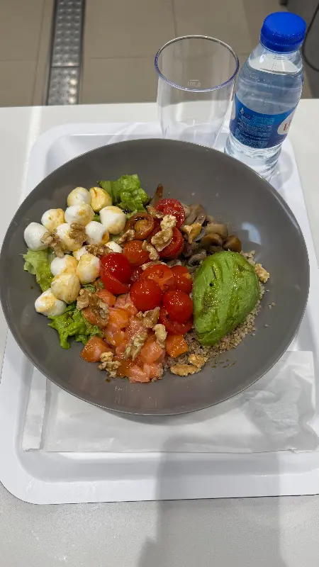 테이블에 놓인 샐러드 볼에는 싱싱한 채소와 함께 연어, 아보카도, 모짜렐라 치즈 등 다채로운 토핑이 가득 담겨 있습니다. 윤기가 흐르는 연어는 입안에서 부드럽게 녹아내리고, 아보카도의 고소함과 모짜렐라 치즈의 담백함은 샐러드의 풍미를 한층 끌어올립니다. 또한, 구운 애호박은 샐러드에 씹는 즐거움을 더하며, 건강한 식감을 선사합니다. 이러한 섬세한 맛의 조화는 ‘Obrigada Hortinha’ 샐러드의 매력을 더욱 돋보이게 합니다.