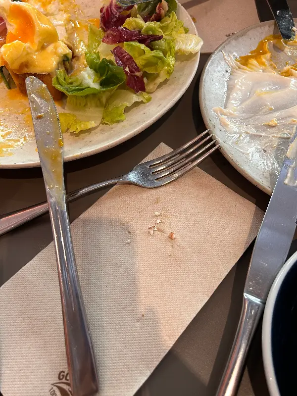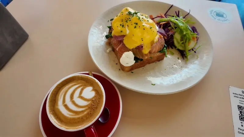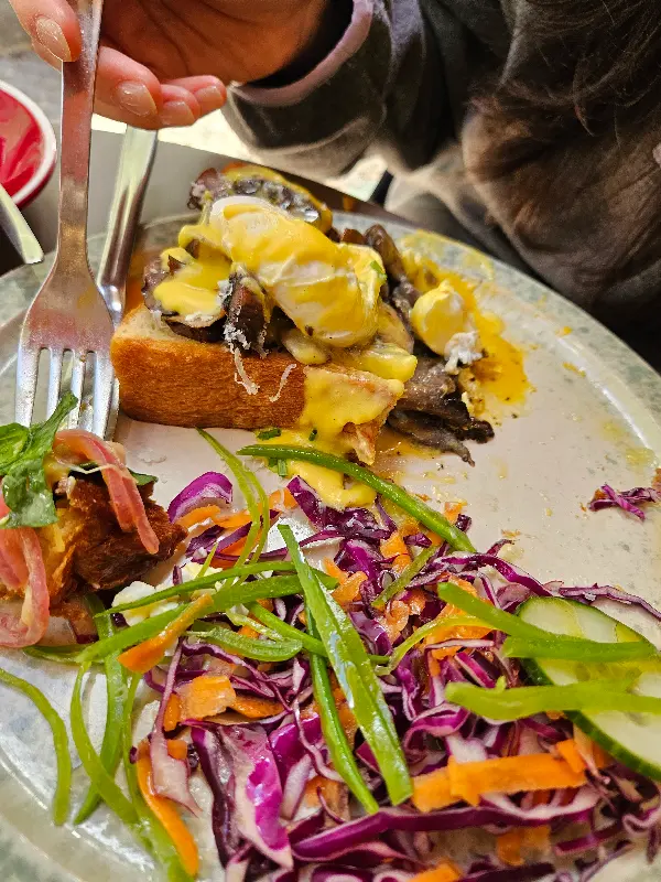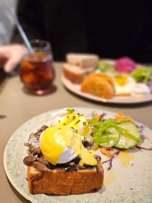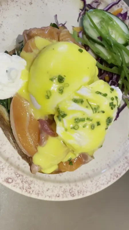 에그 베네딕트를 처음 먹어봤는데, 생각보다 훨씬 맛있어서 놀랐다. 다만, 한 가지 아쉬운 점은 연어가 살짝 비렸다는 점이다. 하지만 전체적으로 만족스러운 맛이었고, 다음에는 다른 메뉴도 도전해보고 싶다는 생각이 들었다.