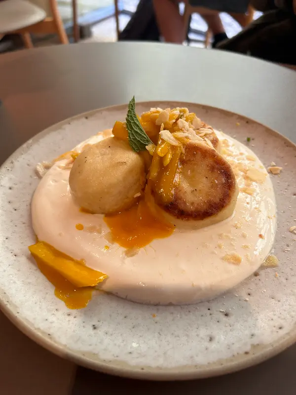 다른 날 방문했을 때, 팬케이크가 궁금해서 주문해 보았다. 이곳의 팬케이크는 흔히 생각하는 팬케이크와는 조금 다른 비주얼이었다. 겉은 바삭하고 속은 촉촉한, 독특한 식감이 인상적이었다.