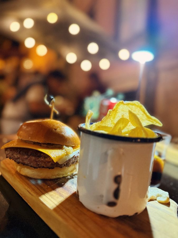 함께 주문한 버거도 맛있었습니다. 완벽하게 구워진 패티와 신선한 채소가 어우러져 훌륭한 맛을 자랑했습니다. 빵도 부드럽고 촉촉해서 패티와 잘 어울렸습니다. 다만, 버거와 함께 제공되는 감자튀김은 평범했습니다. 전체적으로 음식의 퀄리티는 매우 만족스러웠습니다. 신선한 재료와 셰프의 솜씨가 느껴지는 맛이었습니다.