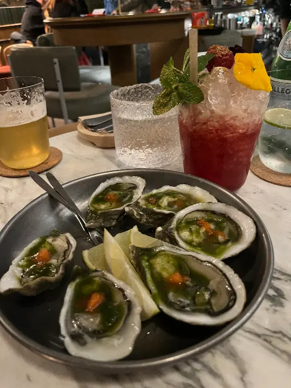 자리에 앉자마자, 핀치의 대표 메뉴인 굴을 주문했다. 곧이어 테이블 위에 놓인 굴은 보기만 해도 신선함이 느껴졌다. 윤기가 흐르는 굴 위에는 독특한 소스가 올려져 있었고, 레몬 조각이 곁들여져 나왔다. 첫 입을 입에 넣는 순간, 지금까지 경험해보지 못했던 신선함과 풍미가 입안 가득 퍼져 나갔다. 마치 바다를 통째로 삼킨 듯한 느낌이었다. 굴 특유의 비린 맛은 전혀 느껴지지 않았고, 신선하고 달콤한 맛만이 감돌았다. 핀치에서 맛본 굴은, 과연 인생 최고의 굴이었다.