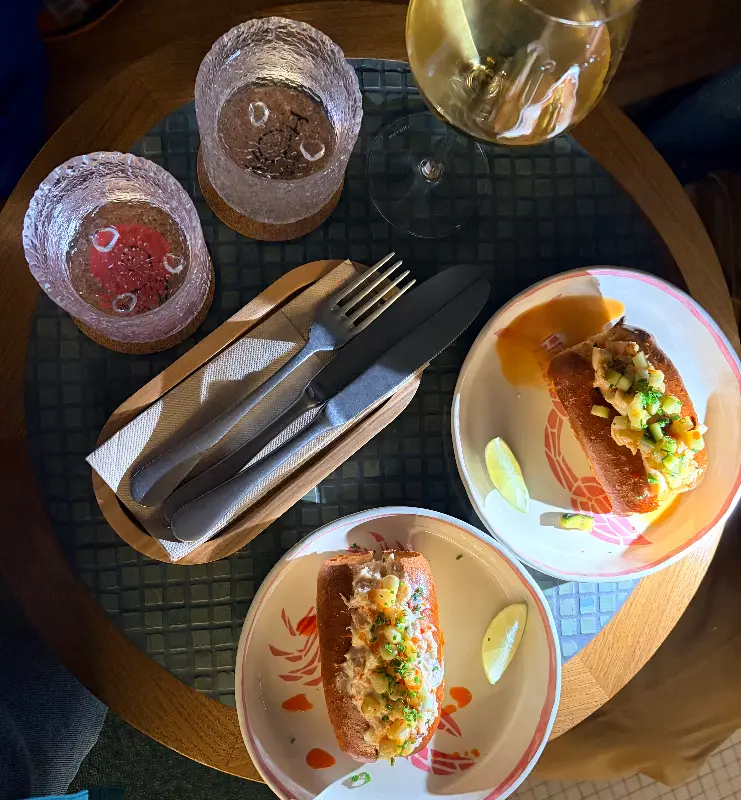 핀치에서 꼭 맛봐야 할 또 다른 메뉴는 바로 랍스터 롤이다. 갓 구워져 나온 빵은 따뜻하고 바삭했고, 그 안에는 신선한 랍스터 살이 가득 차 있었다. 랍스터 살은 탱글탱글한 식감이 살아있었고, 입안에서 부드럽게 녹아내렸다. 랍스터 롤은 한 입 베어 물 때마다, 행복감이 밀려오는 맛이었다.