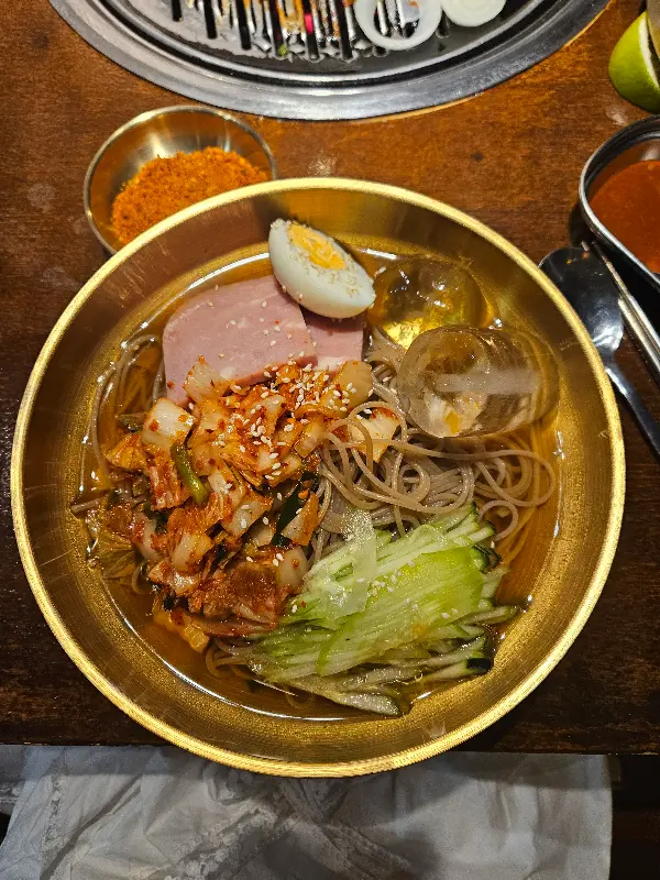 메뉴판을 정독하며 고민한 끝에, 냉면과 불고기를 주문했다. 사실 큰 기대는 하지 않았다. 해외에서 맛보는 한식은 어딘가 아쉬운 점이 남기 마련이니까. 하지만 냉면이 테이블에 놓이는 순간, 그런 걱정은 눈 녹듯이 사라졌다.