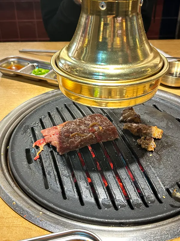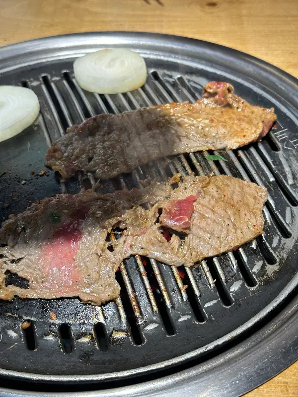 고기는 냄새 없이 완벽하게 구워져 나왔다. 불판 위에서 지글거리는 소리와 함께 퍼지는 고소한 냄새는 식욕을 자극했다. 겉은 바삭하고 속은 촉촉한 고기는 입안에서 살살 녹았다.