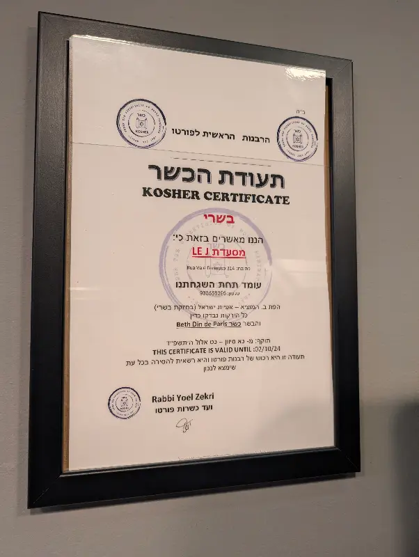 가게 안은 아늑하고 편안한 분위기였습니다. 벽에는 코셔 인증서가 액자에 걸려 있었고, 메뉴판은 포르투갈어, 프랑스어, 영어로 친절하게 안내되어 있었습니다. 직원분들은 모두 밝은 미소로 손님을 맞이하고 있었습니다. 특히 아나 씨는 유대 음식에 대해 잘 모르는 저에게 재료 하나하나를 친절하게 설명해주었습니다. 그녀의 친절함 덕분에 낯선 음식에 대한 경계심을 풀고 편안하게 메뉴를 고를 수 있었습니다.