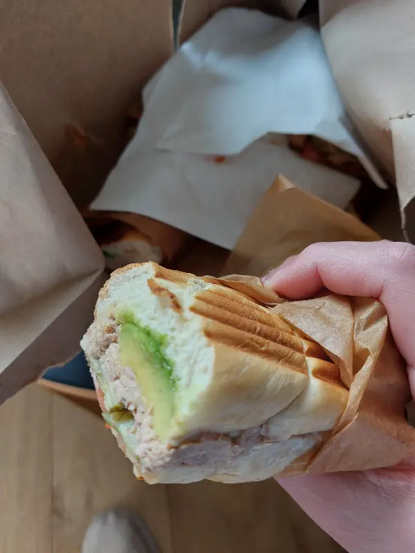 고민 끝에 아나 씨가 추천해 준 터키 파스트라미 믹스 샌드위치를 주문했습니다. 찰라 빵에 신선한 야채와 터키 파스트라미가 푸짐하게 들어간 샌드위치는 보기만 해도 군침이 돌았습니다.
