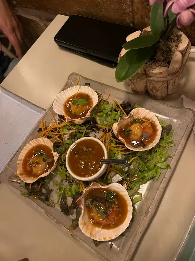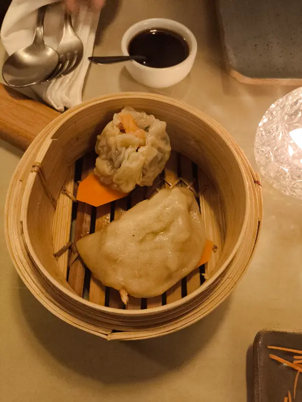 가장 먼저 나온 것은 베트남식 스프링롤과 돼지고기 새우 딤섬이었다. 신선한 야채와 새우가 가득 들어간 스프링롤은 얇고 투명한 라이스페이퍼에 감싸져 있었고, 딤섬은 뜨거운 김을 내뿜으며 먹음직스러운 자태를 뽐냈다.