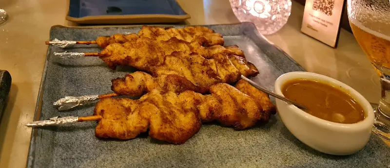 다음으로 등장한 것은 닭꼬치였다. 겉은 바삭하고 속은 촉촉한 닭꼬치는 짭짤하면서도 달콤한 소스가 발라져 있어 맥주 안주로 제격이었다. 숯불 향이 은은하게 풍기는 닭꼬치는 입안에서 살살 녹는 듯했다.
