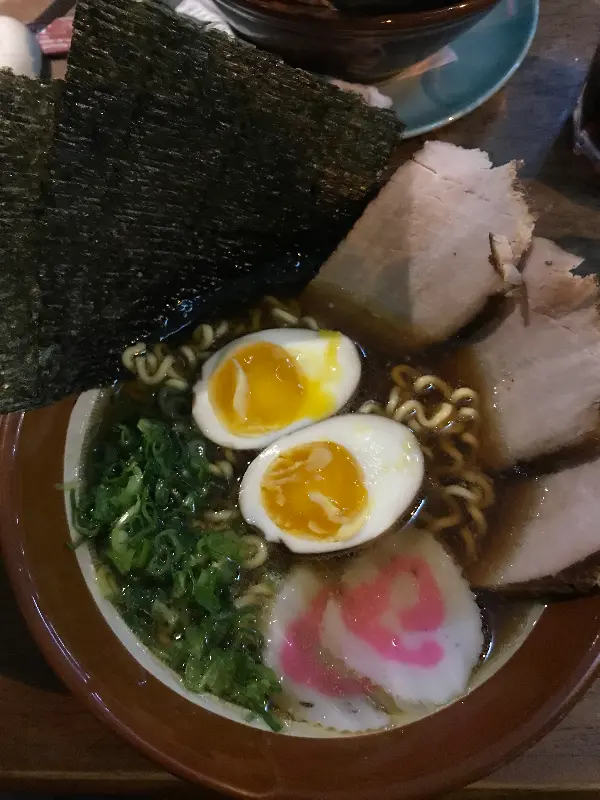 Image 5에서 보이는 것처럼, 라멘에는 반숙 계란, 김, 차슈 등이 함께 제공되었습니다. 특히 반숙 계란은 노른자가 부드럽게 흘러내려, 라멘의 풍미를 더욱 풍부하게 만들어주었습니다.