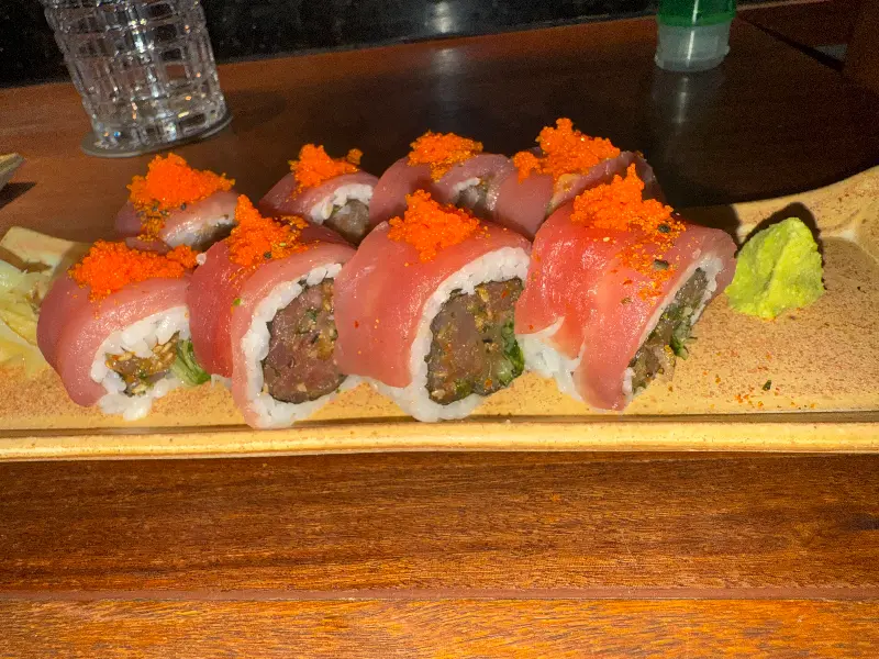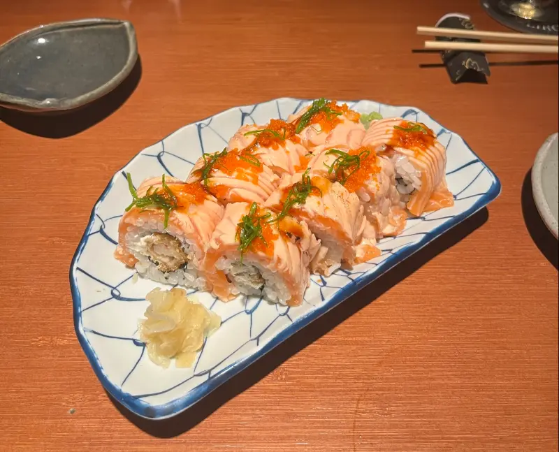 고민 끝에 스시/참치 콤보를 주문했습니다. 기다리는 동안, 테이블 위에 놓인 작은 컵에 담긴 따뜻한 녹차를 마시며 마음을 진정시켰습니다. 잠시 후, 드디어 기다리던 스시가 나왔습니다. 윤기가 흐르는 신선한 재료들이 정갈하게 놓여 있는 모습은 감탄을 자아내게 했습니다.