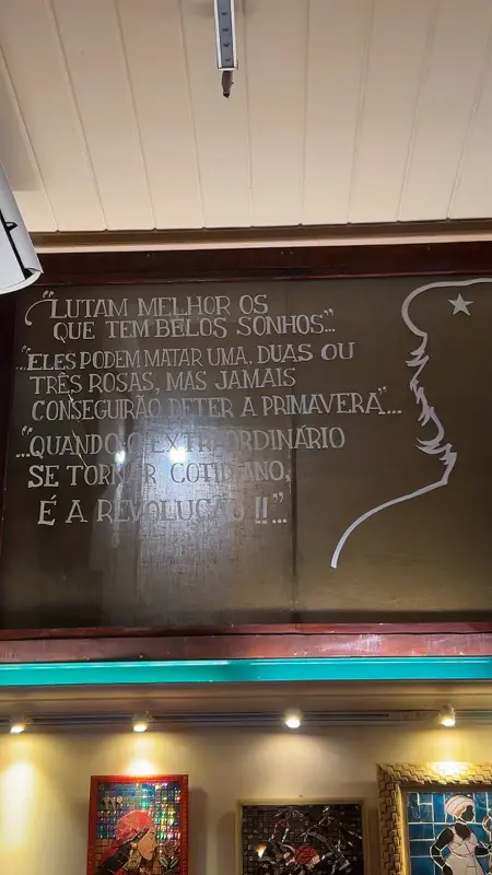 레스토랑은 개방형 공간과 밀폐형 공간으로 나뉘어져 있었는데, 저는 좀 더 활기찬 분위기를 느끼고 싶어 개방형 공간에 자리를 잡았습니다. 테이블과 의자는 빈티지한 느낌을 살려 꾸며져 있었고, 벽면에는 브라질의 역사와 문화를 담은 사진과 그림들이 걸려 있었습니다. 마치 작은 박물관에 온 듯 볼거리가 가득했습니다.