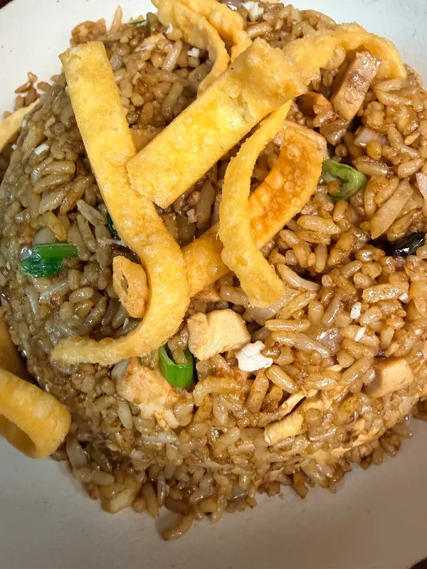 짭짤하면서도 감칠맛 넘치는 아로스 차우파는 젓가락을 멈출 수 없게 만드는 마성의 매력을 지녔습니다. 윤기가 자르르 흐르는 밥알은 입안에서 부드럽게 흩어지고, 닭고기와 야채는 씹을수록 풍성한 풍미를 선사합니다. 특히, 밥 위에 얹어진 바삭한 튀김은 짭짤한 맛과 고소한 풍미를 더해 줍니다. 한 입, 두 입 먹을수록 점점 더 빠져드는 맛이었죠.