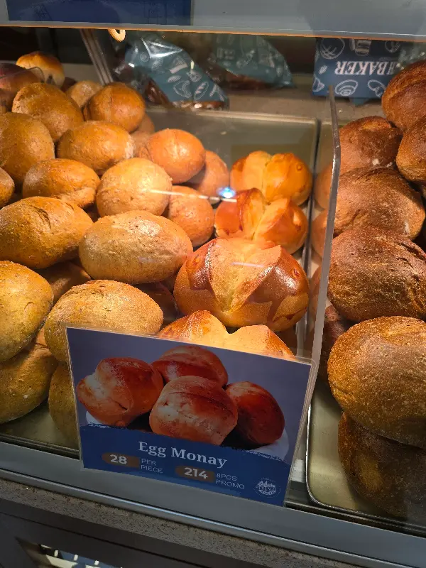 매장 안으로 들어서니 다양한 종류의 빵들이 진열대를 가득 채우고 있었다. 식빵, 판데살, 크루아상 등 식사 대용으로 좋은 빵들이 눈에 띄었다. 따뜻한 조명 아래 가지런히 놓인 빵들을 보니 저절로 미소가 지어졌다. 빵 외에도 도넛, 에그 모나이, 건포도 빵 등 달콤한 간식거리도 준비되어 있어 선택의 폭이 넓었다.