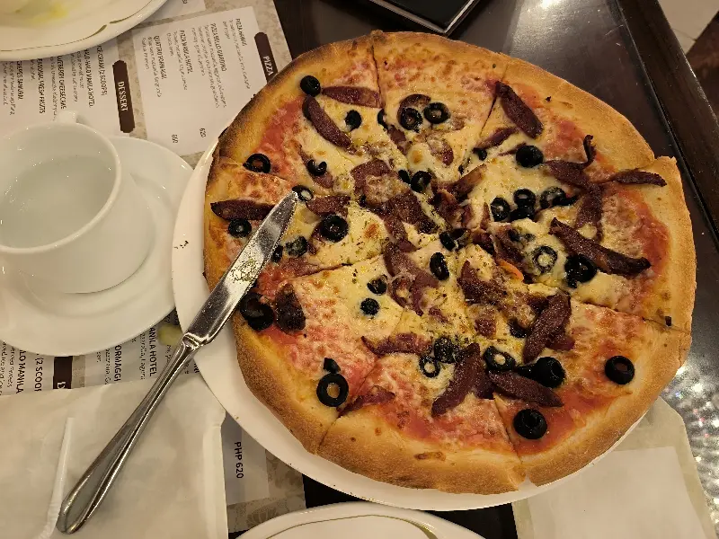 피자는 기대 이상으로 맛있었다. 특히 짭짤한 초리조는 피자의 풍미를 한층 더 끌어올렸다. 마치 피자 위에 토종 초리조를 얹은 아침 식사를 먹는 듯한 기분이랄까?