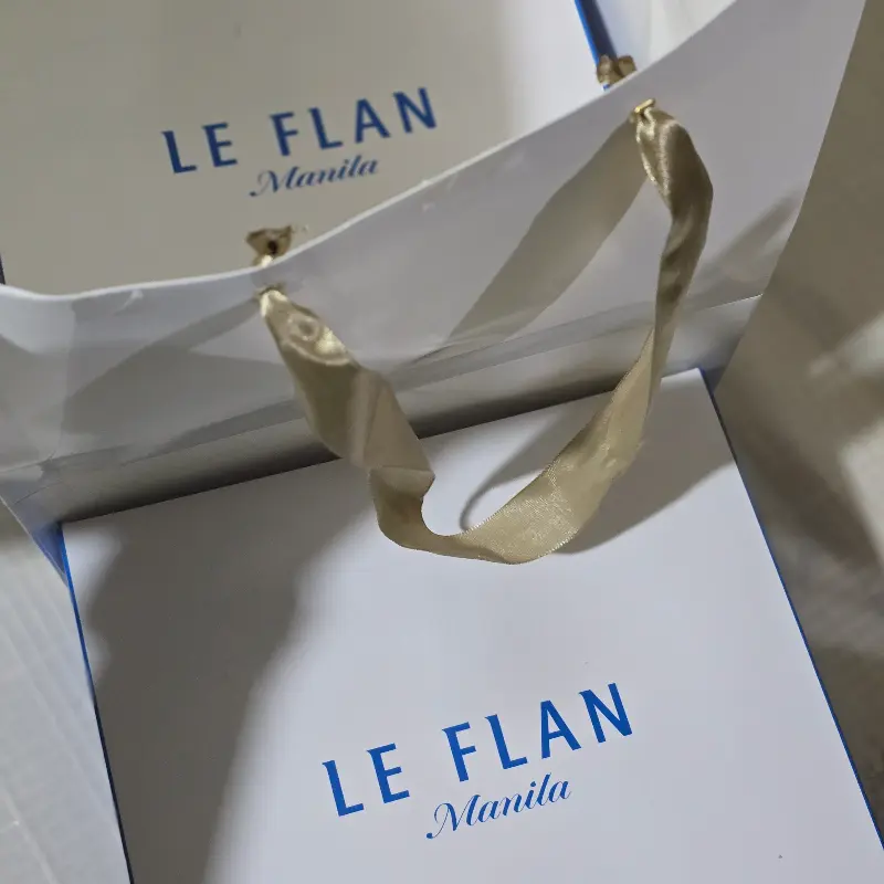 Le Flan Manila의 로고가 새겨진 고급스러운 포장 백.