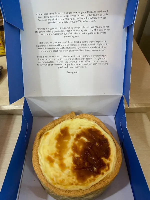 소중한 언니의 생일 선물로 Le Flan의 플랜을 선택했다. 바닐라와 부코, 두 가지 맛을 선물했는데, 역시나 모두가 만족스러워했다. 과거 마카티 아얄라 트라이앵글 파크 팝업 이벤트에서 맛보았던 비스코프 플랜의 황홀한 기억이 떠올랐다. 쿠키 버터 크럼블이 얹어진 비스코프는 고급 재료의 풍미가 느껴지는, 잊을 수 없는 맛이었다.